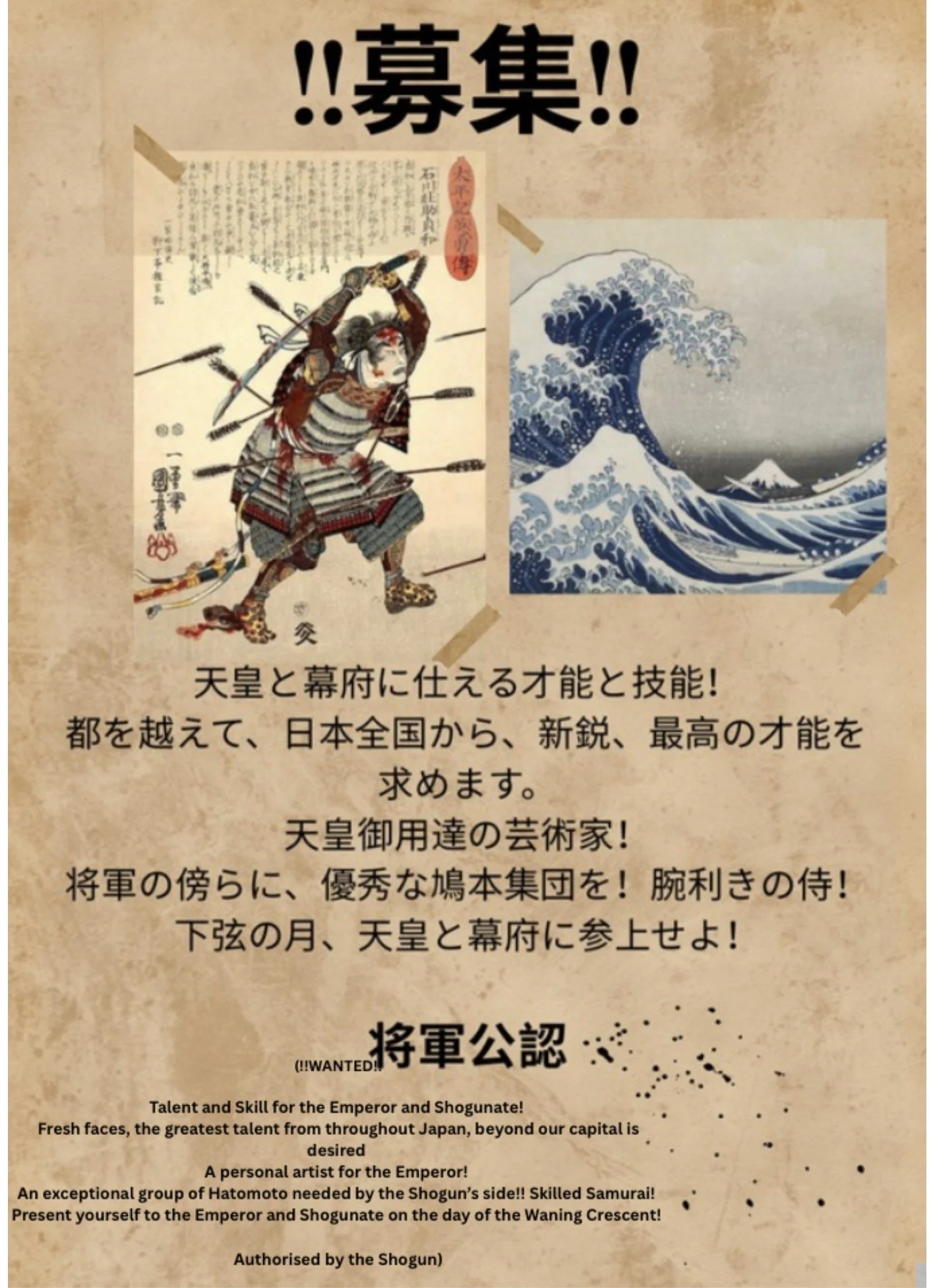 “Thirty new hatamoto will be selected today out of the hundreds of you, however, the emperor will only require one personal artist. Much luck.”